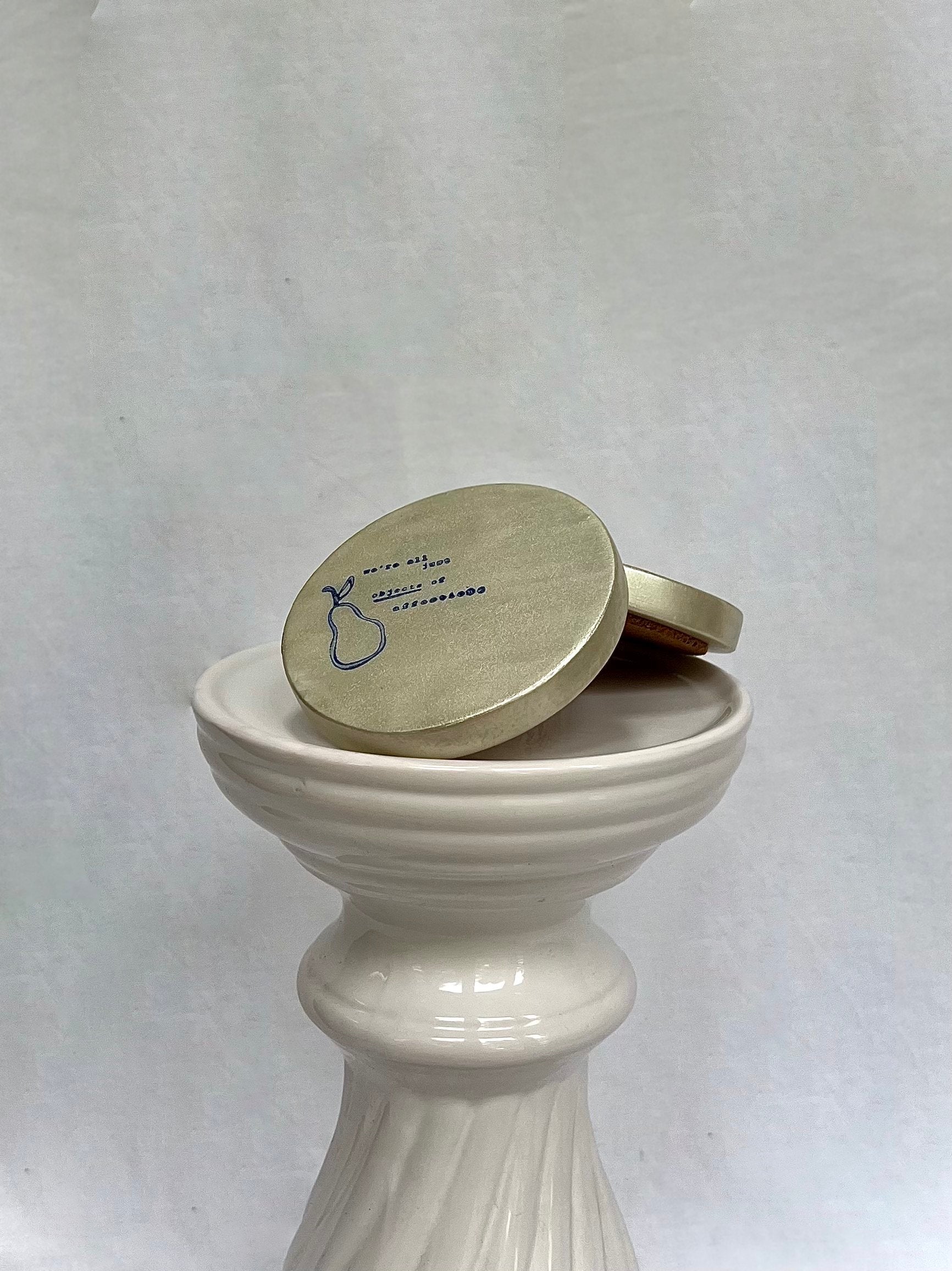 Hand-stamped in small batches, this piece carries the individuality that only slow work can bring. A table detail in Lamy blue with a hammered pearl finish that plays with light in a way that feels almost accidental. Designed as a single statement rather than part of a set.